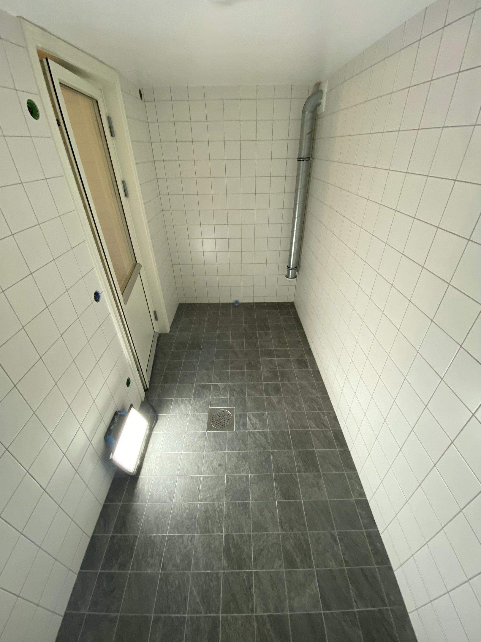 'Ytorna förbereds noggrant genom rengöring och avjämning. Eventuella ojämnheter, sprickor eller hål spacklas med lämpligt avjämnings spackel, ofta i flera lager, för att skapa ett helt plant och stabilt underlag. Mellan lagren slipas ytan lätt för maximal jämnhet, och primer appliceras för att förbättra vidhäftning och säkerställa fuktskydd. Plattor skärs och anpassas efter rummets unika mått och vinklar, med särskild omsorg för hörn och kanter. Plattorna placeras med precision, fogning och tätning utförs noggrant med silikon och fogmassa där det behövs. Slutkontroll säkerställer att golv och väggar är jämna, stabila och färdiga för långvarig användning.