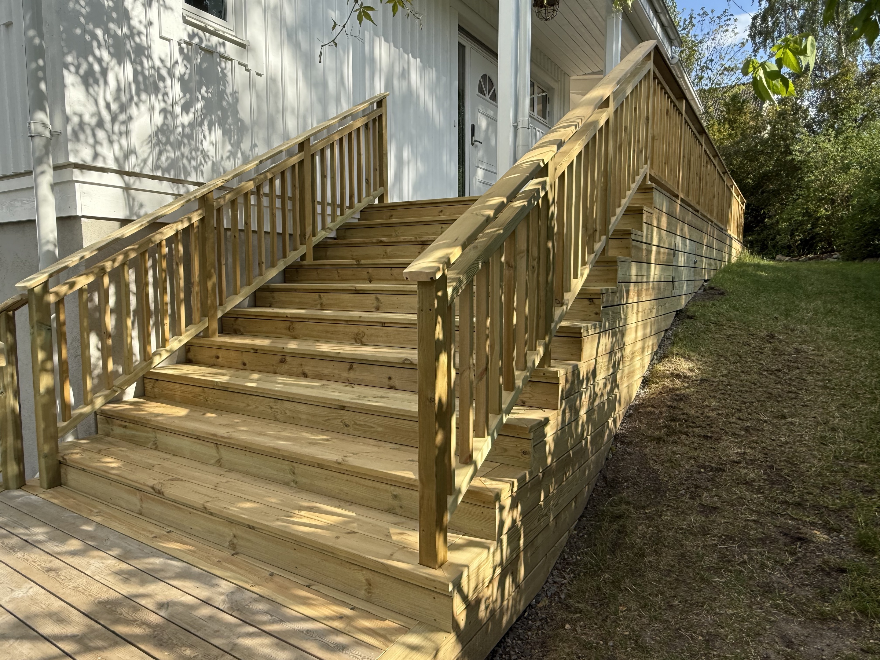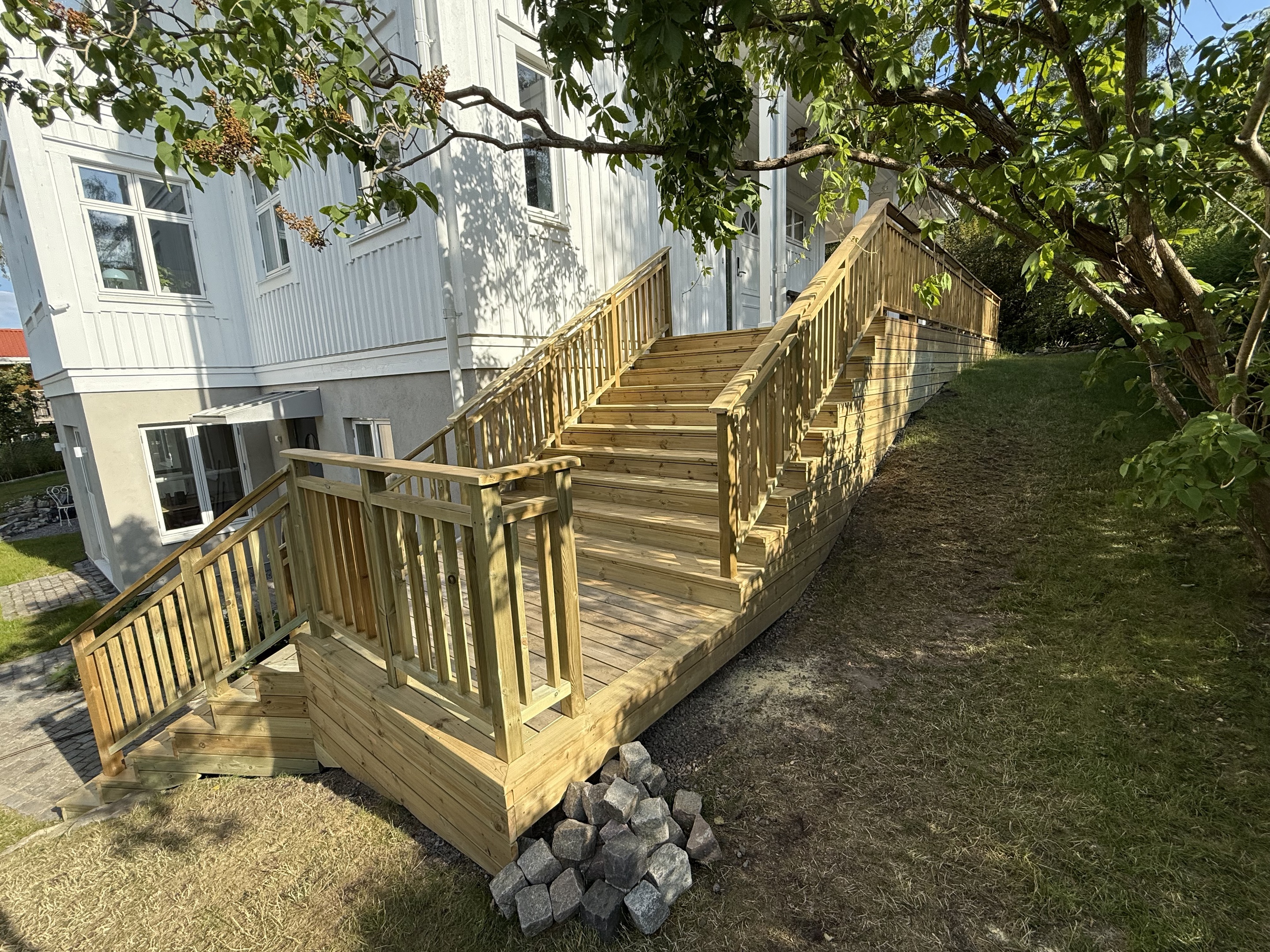 Trappor renoveras från start till slut med fokus på säkerhet och finish. Gamla trappsteg rivs eller slipas, nya material tillverkas och anpassas på plats. Stegen monteras med precision, och ytor slipas, behandlas och lackas eller målas enligt önskemål. Resultatet är en trygg, hållbar och estetiskt tilltalande trappa.