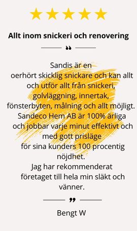 Sandeco Hem är ett företag med erfarna och pålitliga byggnadsarbetare, med lång erfarenhet i den svenska byggbranschen.