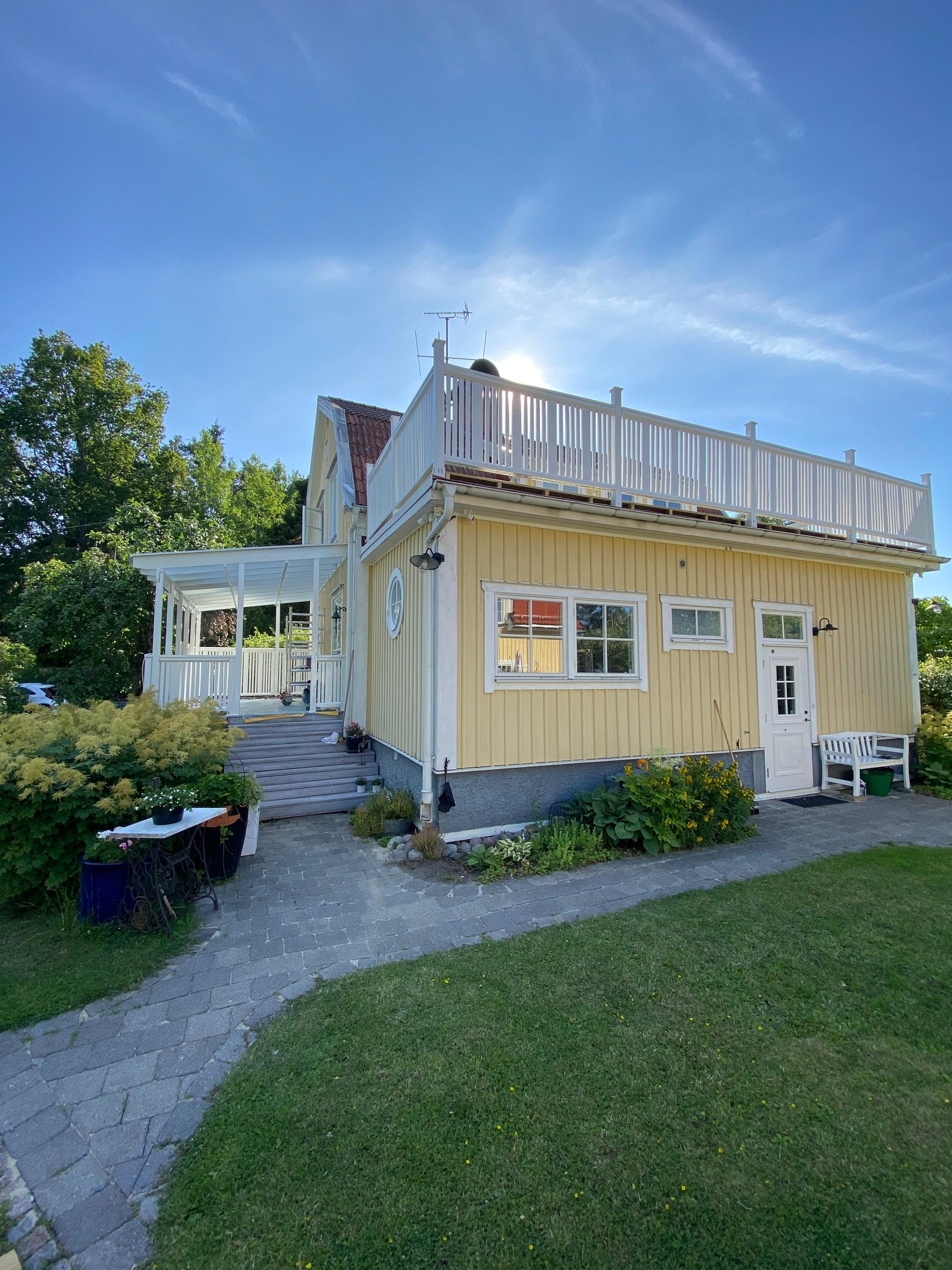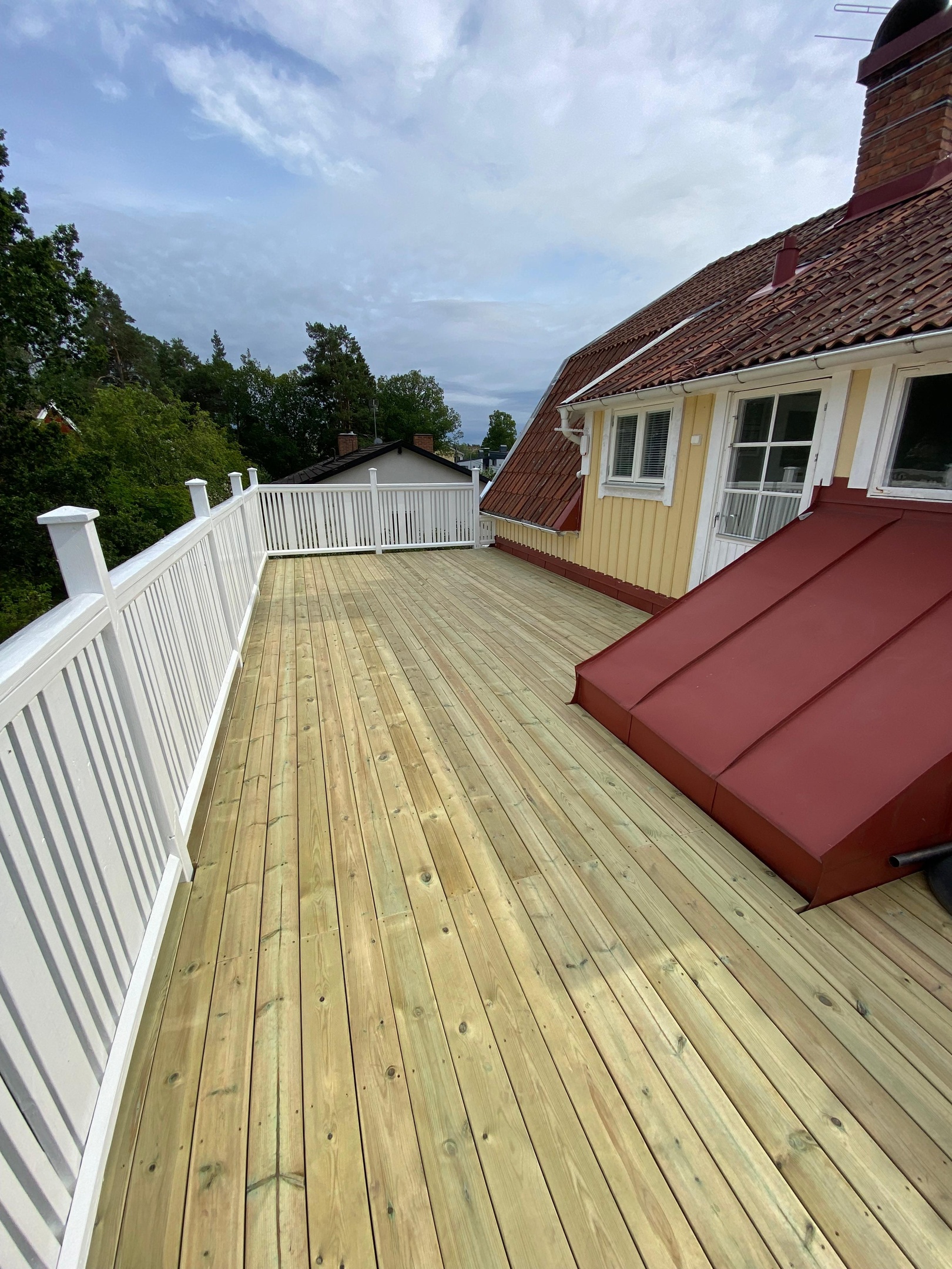 Vi förbereder ytorna noggrant innan målning och golvbyte. Gamla färgskikt tas bort, ytor rengörs och slätas ut. Golvytor förbereds med rätt underlag, och nya golv läggs med precision. Räcken målas med kvalitetsfärg för långvarigt skydd. Slutkontroll garanterar jämna ytor och ett professionellt resultat.